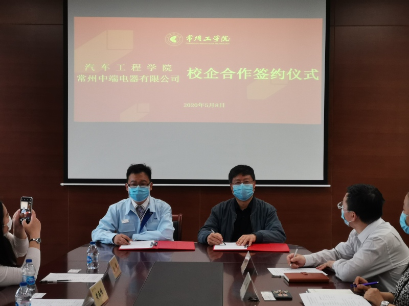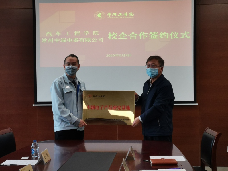 5月8日上午,william威廉中文与常州中端电器有限公司在天权楼C408成功举行了产学研合作签约仪式暨车辆电子产品研究基地挂牌仪式。常州中端电器有限公司协理李昊麟携开发部、业务部、人事部门来院商谈校企合作事宜,学院党总支书记兼院长记刘天军、副院长房汝建、副书记苏频,以及专业系主任、办公室主任参加了本次活动。