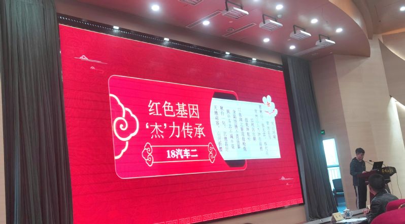 在创建答辩会上,18汽车二班的答辩代表荣浚材借助视频、PPT等载体,生动展示创建计划、深情展望创建成果,从团学活动、学风建设等方面具体讲解了作为新时代的大学生应如何将“三杰精神”融入班级建设,争做新时代的有为青年。