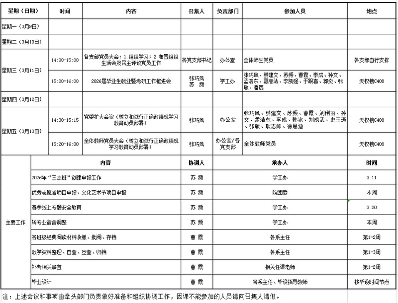 2025-2026-2学期第二周工作安排
