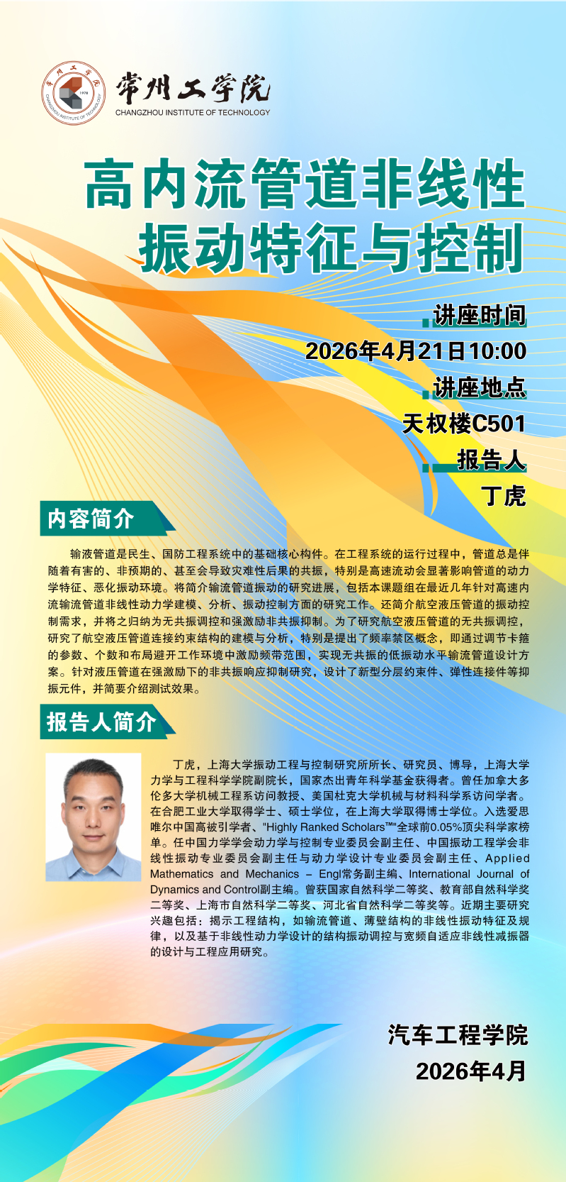 学术报告 | 高内流管道非线性振动特征与控制